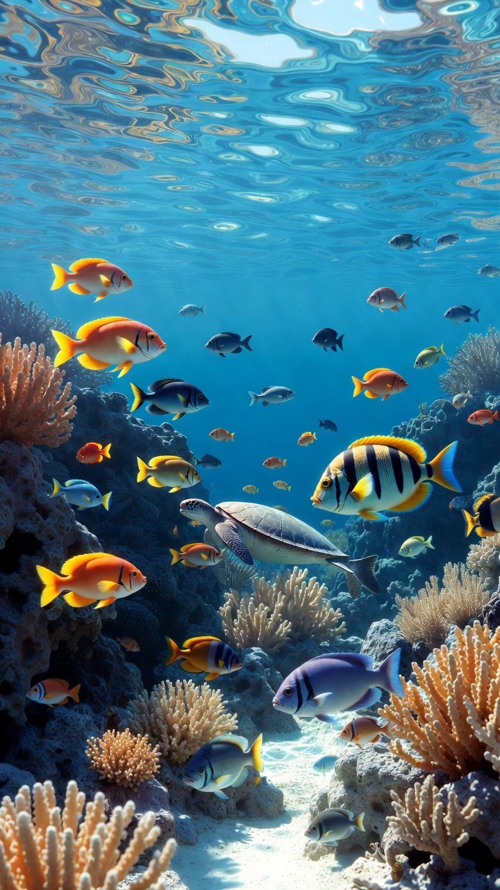 Transform your screen into a lively, pocket-sized aquarium! This breathtaking live wallpaper plunges you into the vibrant depths of a tropical ocean. Watch a majestic sea turtle swim gracefully past blooming coral reefs, accompanied by a mesmerizing variety of colorful tropical fish. With the crystal-clear blue water and dappled sunlight filtering from above, this dynamic underwater scene brings the ultimate peaceful, yet lively, nature experience right to your phone.